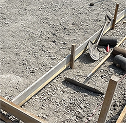 墓所にて基礎工事を行います。耐久性の高いお墓となるよう、しっかりとした土台づくりを行い丁寧に仕上げます。
